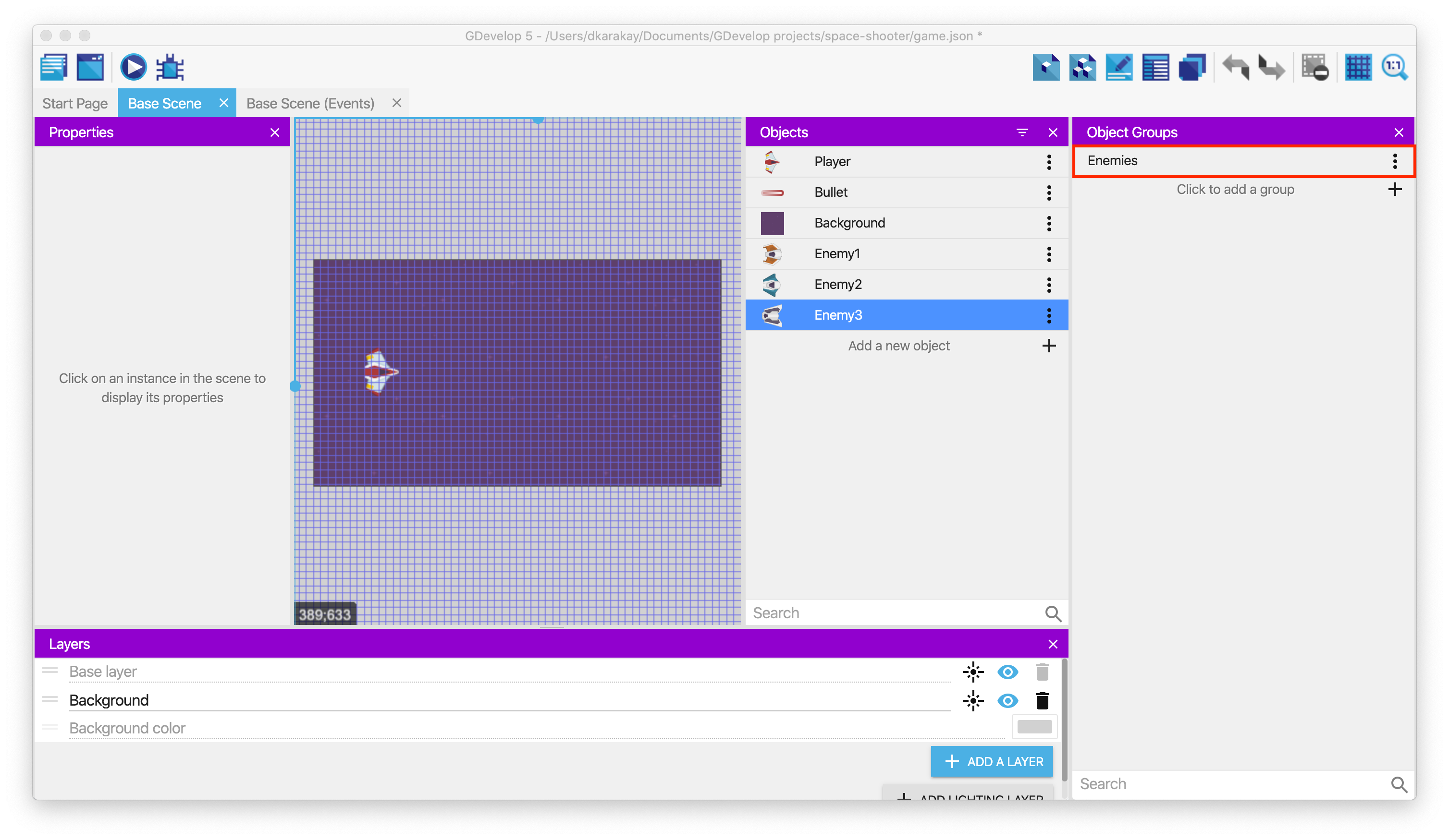 Finally, rename the object group to "Enemies."